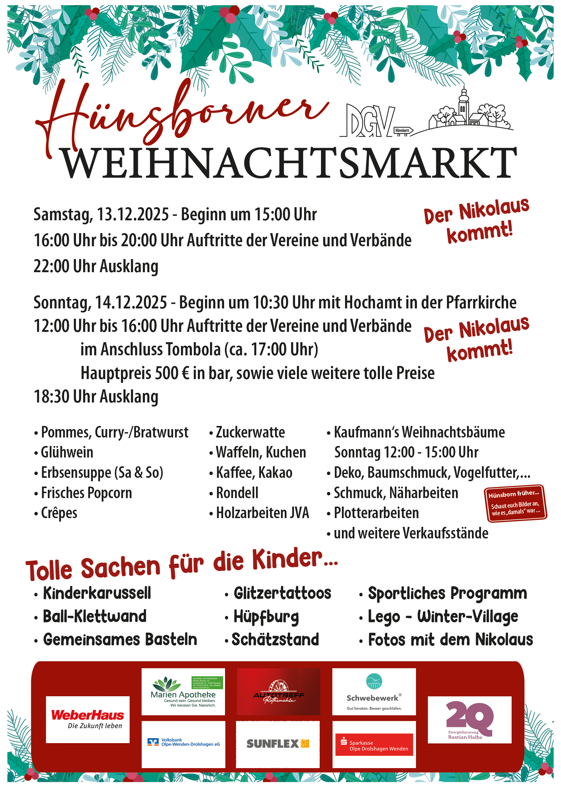 Hünsborn ist eine Ortschaft der Gemeinde Wenden im schönen Sauerland, des Kreises Olpe in Nordrhein-Westfalen (Deutschland) und hatte zum 30. Juni 2023  stolze 3073 Einwohner.